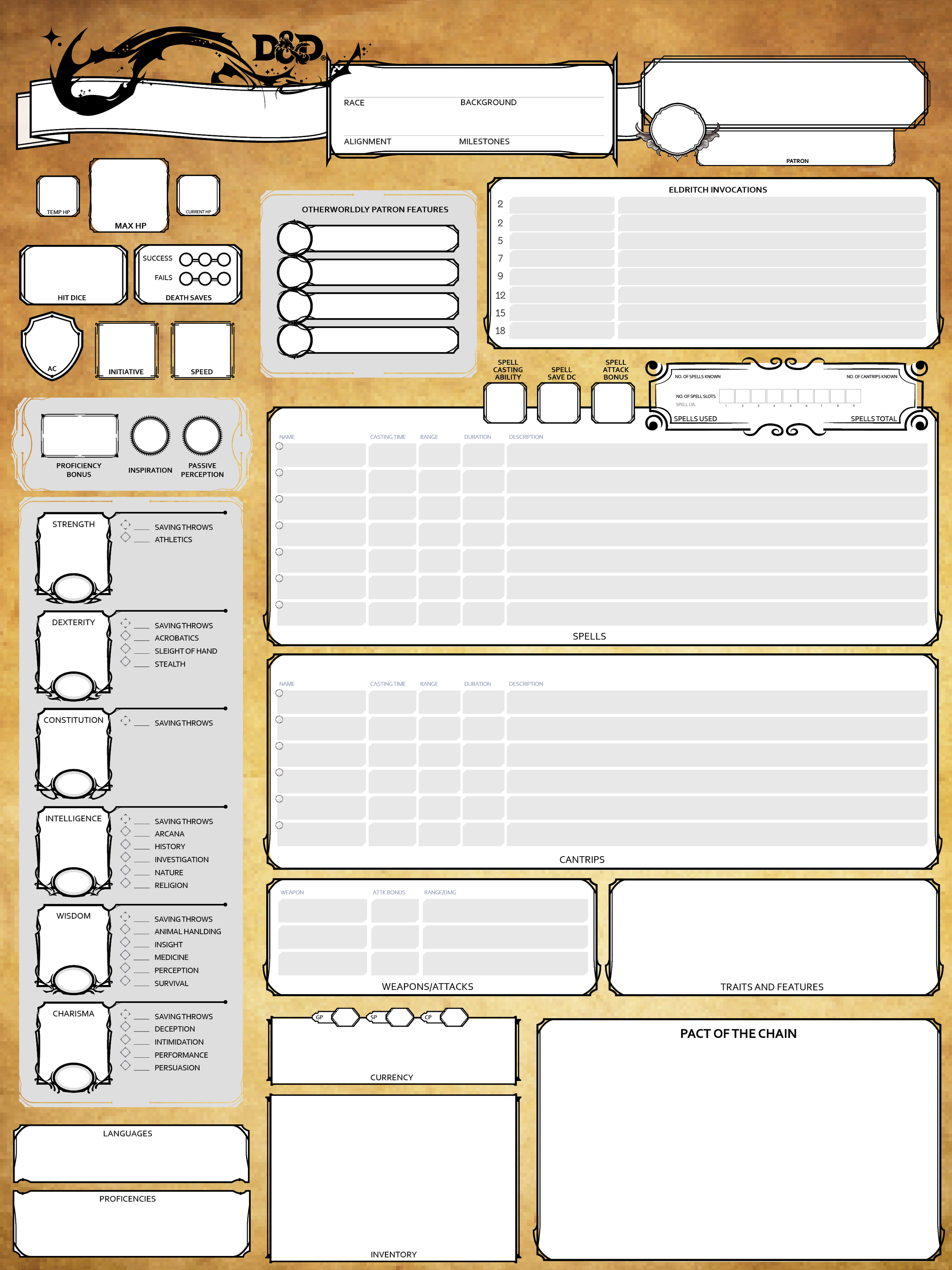 Custom DND Character Sheet | Warlock